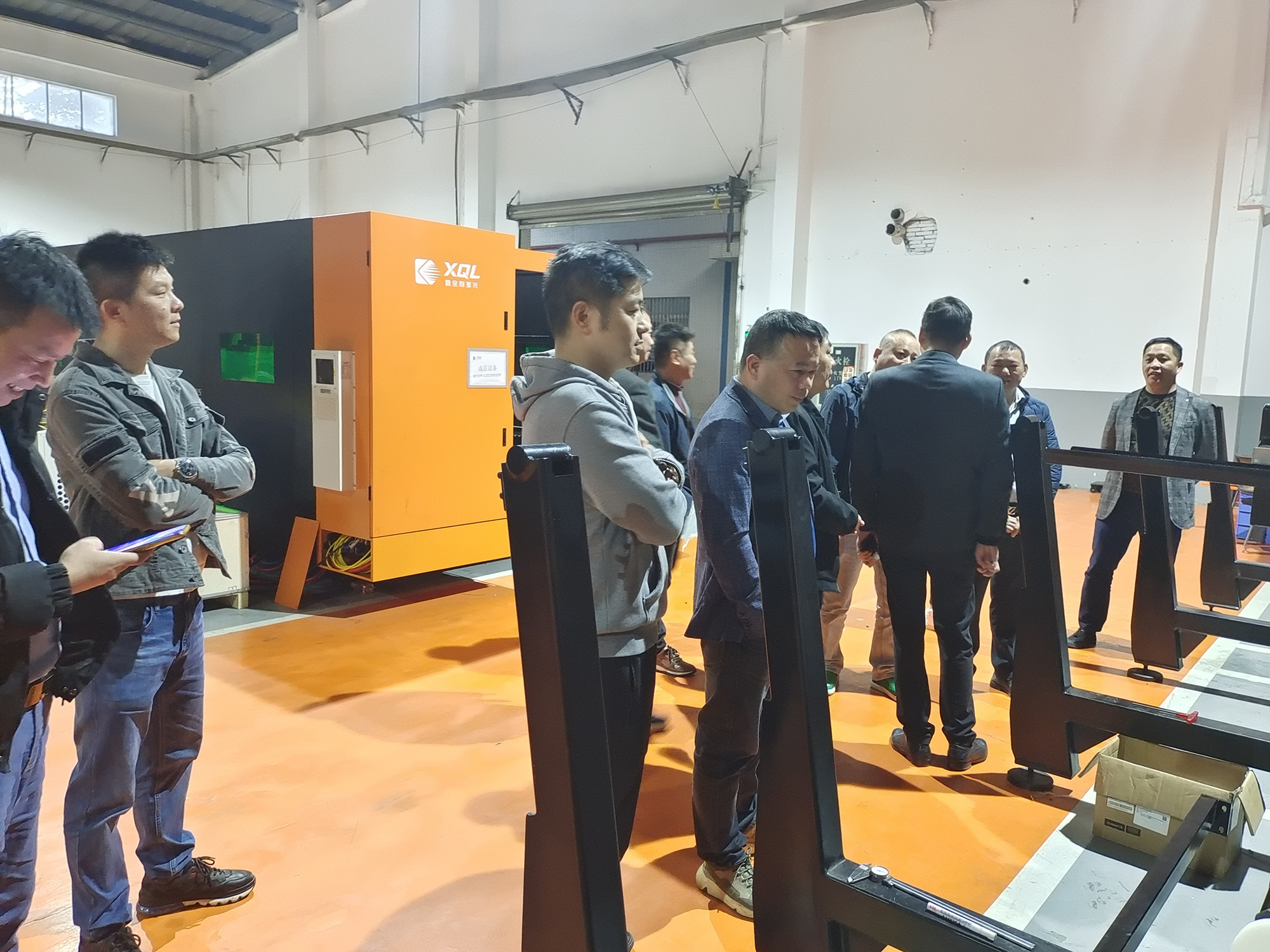 在簡(jiǎn)單的介紹我公司的產(chǎn)品后,帶領(lǐng)行業(yè)領(lǐng)導(dǎo)參觀鑫全利激光的激光設(shè)備生產(chǎn)基地